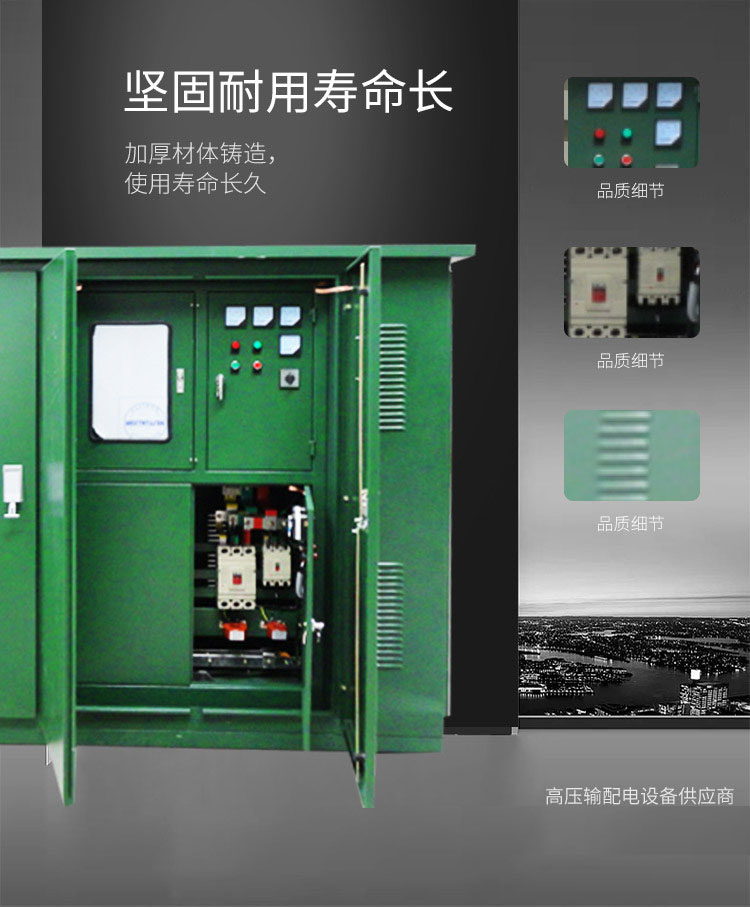 突出優(yōu)勢(shì):損耗低、節(jié)能、運(yùn)行經(jīng)濟(jì)、免維護(hù)、工藝結(jié)構(gòu)先進(jìn)、抗短路、雷電沖擊水平高外,還具有阻然、防潮、防塵、噪聲低等特點(diǎn)